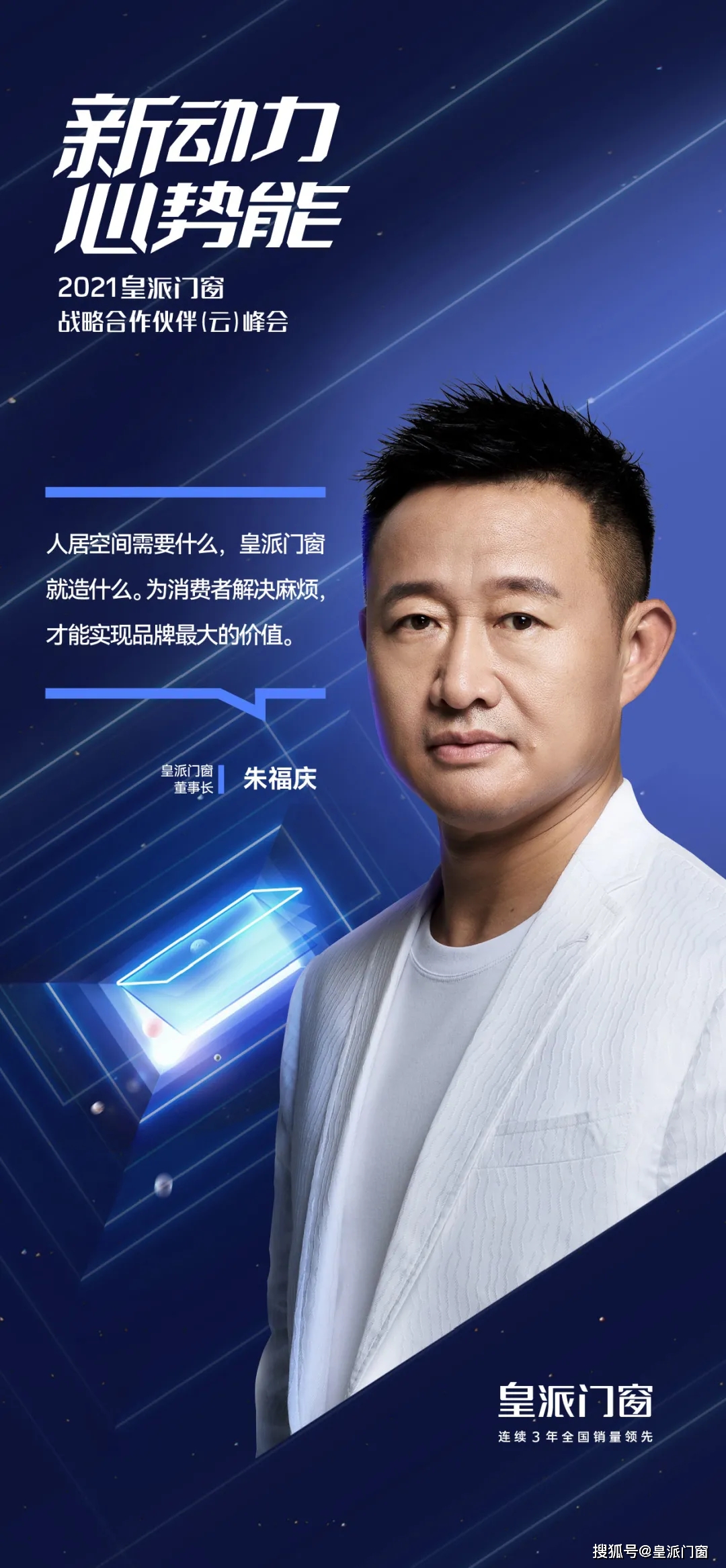 大會啟動,皇派門窗董事長朱福慶盛裝出席并為大會致辭,深度分析門窗行業(yè)的發(fā)展階段與特點,探討萬億門窗市場背后的機遇與挑戰(zhàn),著重分享皇派門窗全新的戰(zhàn)略規(guī)劃,同時為合作伙伴答疑解惑,助推門窗產(chǎn)業(yè)鏈的規(guī)范與升級。正如本次大會的主題與舞臺設(shè)計,開拓星空和遨游藍(lán)海是皇派門窗的行動與目標(biāo),亦是實現(xiàn)宏偉戰(zhàn)略藍(lán)圖的不懈動能。