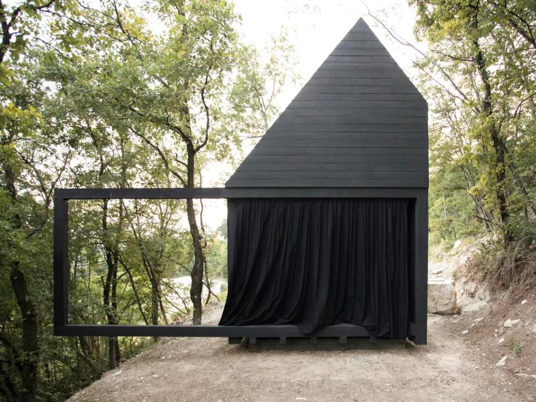 其他的例子包括 Pop-In, Pop-Out, Pop-Up,在威尼斯的一個(gè)可折疊的街道電影院,具有一個(gè)可調(diào)節(jié)的窗簾機(jī)制,可促進(jìn)多變的親密關(guān)系,從外部決定內(nèi)部活動(dòng)的可見(jiàn)性。說(shuō)到隱私,Chapel of Silence也有一個(gè)窗簾,按照游客的要求調(diào)節(jié)與外界的親密程度。窗簾可以完全關(guān)閉,為祈禱人創(chuàng)造一個(gè)更私人的環(huán)境,也可以完全開(kāi)放,與自然環(huán)境連接。