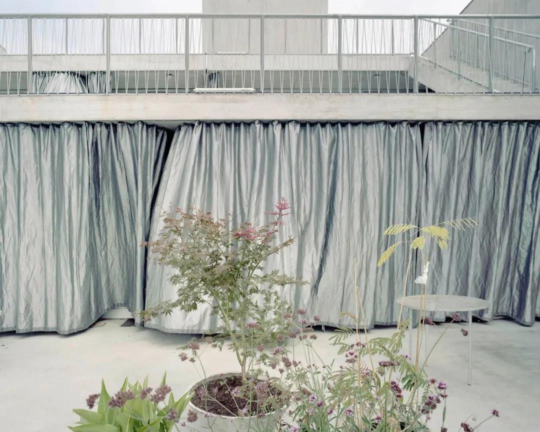 使建筑不那么僵硬是相當(dāng)具有挑戰(zhàn)性的,但輕材料,如織物,可以給立面增加更多的運(yùn)動(dòng)和新的可能性。更輕的元素,如織物,可以增加更多的運(yùn)動(dòng)和可能性,就像在Brandlhuber + Emde, Burlon + Muck Petzet 設(shè)計(jì)的Terrassenhaus Berlin或是Felipe Hess設(shè)計(jì)的 Casa Lara中看到的一樣,特征都是頂層有一個(gè)帆布窗簾盒,圍合出包含水箱和燒烤的體積。