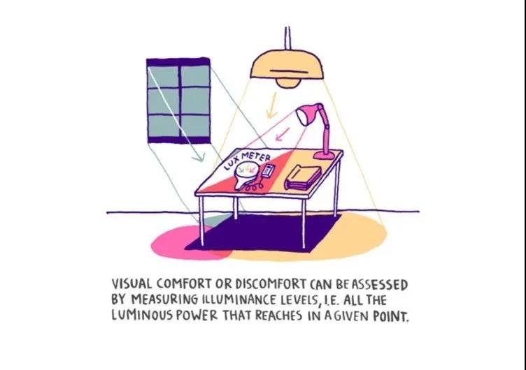 照度,表示為 lux (勒克斯),是來自四面八方并達(dá)到某一特定任務(wù)完成點(diǎn)的光功率。當(dāng)在某一表面測(cè)量時(shí),例如在辦公室的書桌上,確保照度達(dá)到500勒克斯。 值過高或過低會(huì)產(chǎn)生不適。這對(duì)于辦公室和工作場(chǎng)所的人工照明是有效的,但是,為了考慮到日光的自然變化,最好參考下面簡(jiǎn)要說明的新歐洲采光標(biāo)準(zhǔn)。亮度,表示為 (cd/m2,每平方米坎代拉),對(duì)應(yīng)于單位面積,由光源和我們周圍的表面發(fā)出或反射的不同發(fā)光強(qiáng)度。 它基本上是從視覺感知和心理感受的角度來描述光的亮度。通過測(cè)量它,我們可以識(shí)別光和眩光的對(duì)比,并了解光是均勻分布還是來自特定的光源。在這兩種情況下都必須使用光度計(jì)。測(cè)量照度(lx)稱為照度計(jì)(Lux Meter),測(cè)量亮度(cd/m2)稱為亮度計(jì)(Luminance Meter)。